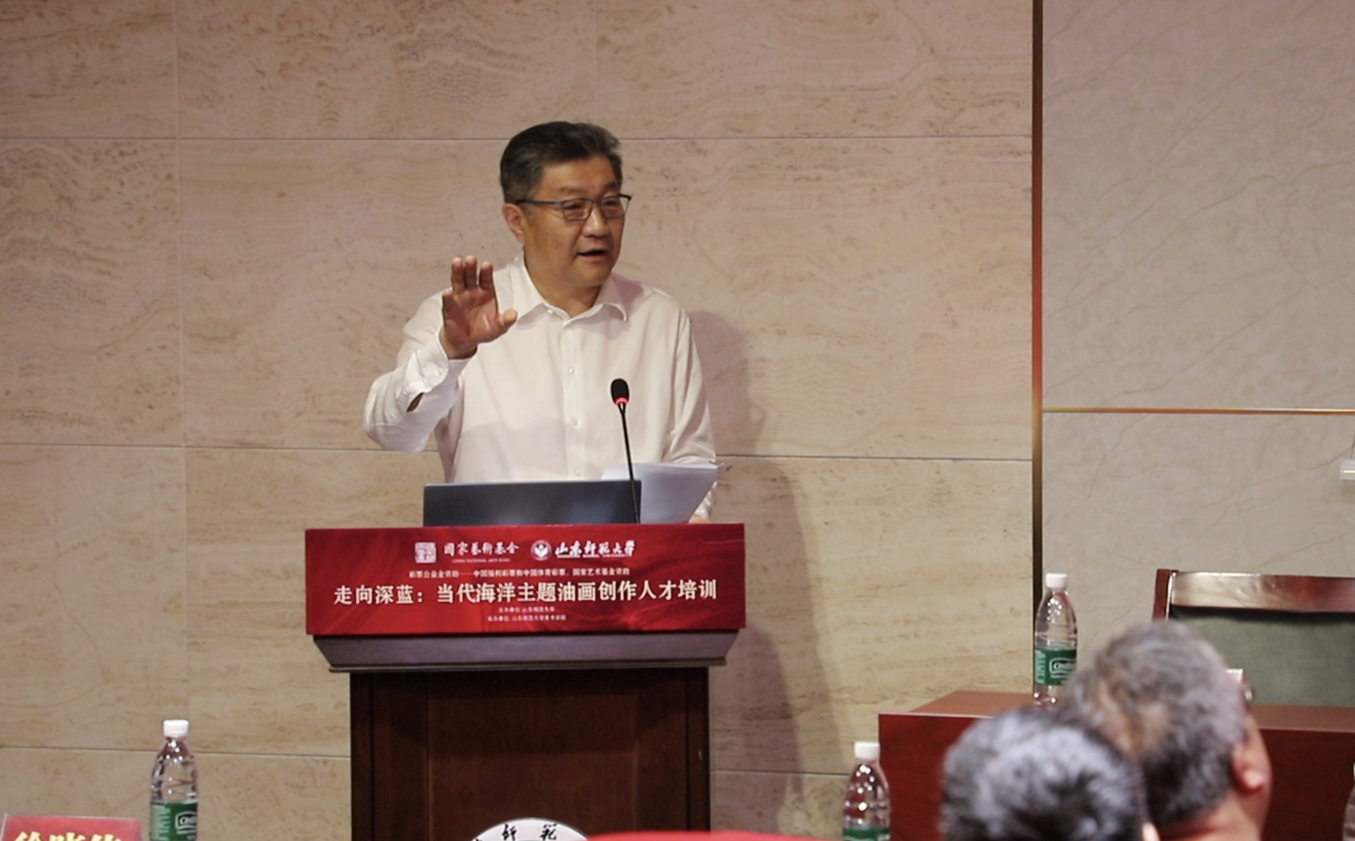 山东省文联主席、山东省美协主席、山东艺术学院院长徐青峰,中央美术学院原造型学院院长戴士和,中央美术学院人文学院教授委员会主任曹庆晖,山东师范大学社科处副处长刘本森等出席开班式。仪式由山东师范大学美术学院院长刘明波主持,国家艺术基金艺术人才培训资助项目中期监督专家莅临现场指导。