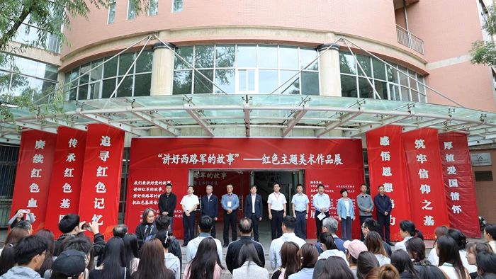 7月4日上午,由山东师范大学与河西学院联合主办的“讲好西路军的故事”红色主题美术作品展在河西学院大学生美术馆开幕。河西学院党委副书记、校长李广,山东师范大学副校长张茂聪,西南大学校长助理、山东师范大学副校长郑元杰,山东师范大学党委常委、宣传部部长于晓明,甘肃省教育厅教师工作处副处长凤宏伟,河西学院副校长高荣,河西学院党委常委、宣传部部长褚建霞及张掖市美协、甘州区美协、中国工农红军西路军纪念馆等单位负责同志出席活动。两校相关部门、学院负责同志和师生代表参加活动。开幕式由河西学院副校长王新华主持。