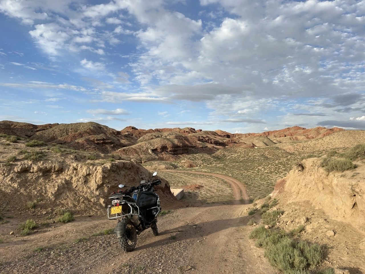 教学之余,一辆从山东骑来的摩托车成为高空探秘河西的“老伙计”。它不仅是交通工具,更是高空的移动教学工具包:尾箱里总是装着大疆无人机、影石360全景相机和装着教学素材的硬盘。高空骑着摩托翻山越岭,用镜头将张掖周边的绚丽美景从多方位、多角度记录下来。在一次次的探险经历中,高空也曾遭遇危险,但他深信,“唯有亲身经历者,方能传授真实的艺术感知”。因此,在每一次的骑行探险活动中,高空都会精心设定教学目标,巧妙地将野外生存技能,如方向辨别、极端天气应对等,融入艺术采风课程之中,旨在全方位提升学生的综合素质。那些充满探索与挑战的轨迹,最终都被高空巧妙地转化成课堂上生动的教学案例,成了学生创作灵感的源泉,以及他们作品中重要的文化基因。