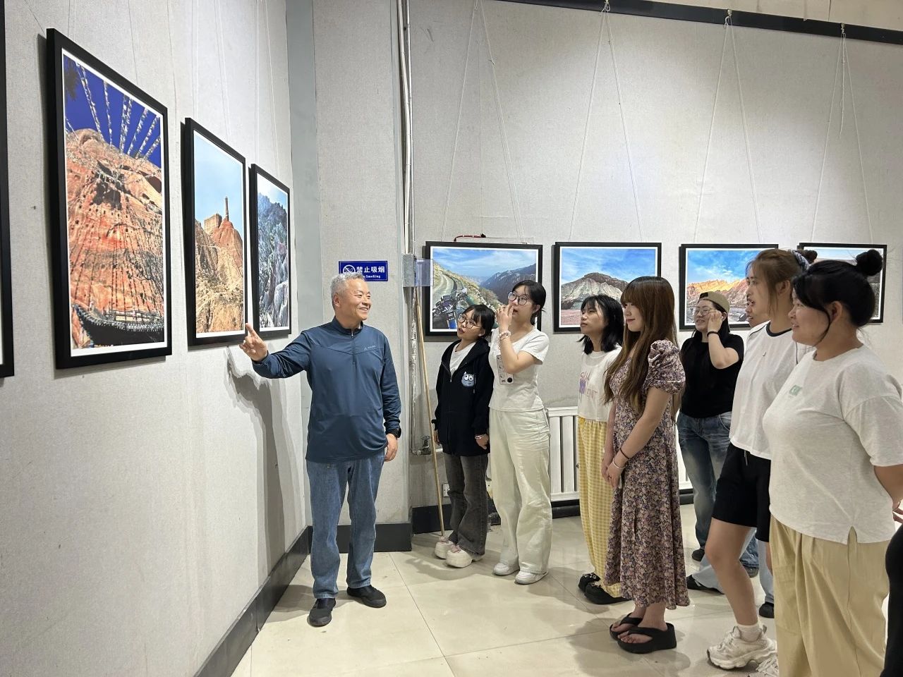 6月18日,河西学院美术馆内,众多师生被一幅幅精美的摄影作品深深吸引,驻足观看。这里正在展出的是山东师大美术学院支教老师高空举办的“魅力张掖·探秘祁连”个人主题摄影展。此次展出的120幅作品,不仅展现了张掖独特而优美的自然风光,更凝聚了高空两年来扎根西部、奉献教育的深厚情怀与艺术追求。作为“教育部师范教育协同提质计划”的一部分,高空用镜头记录了这片士地的美丽与壮阔,也用行动诠释了教育的意义与价值。