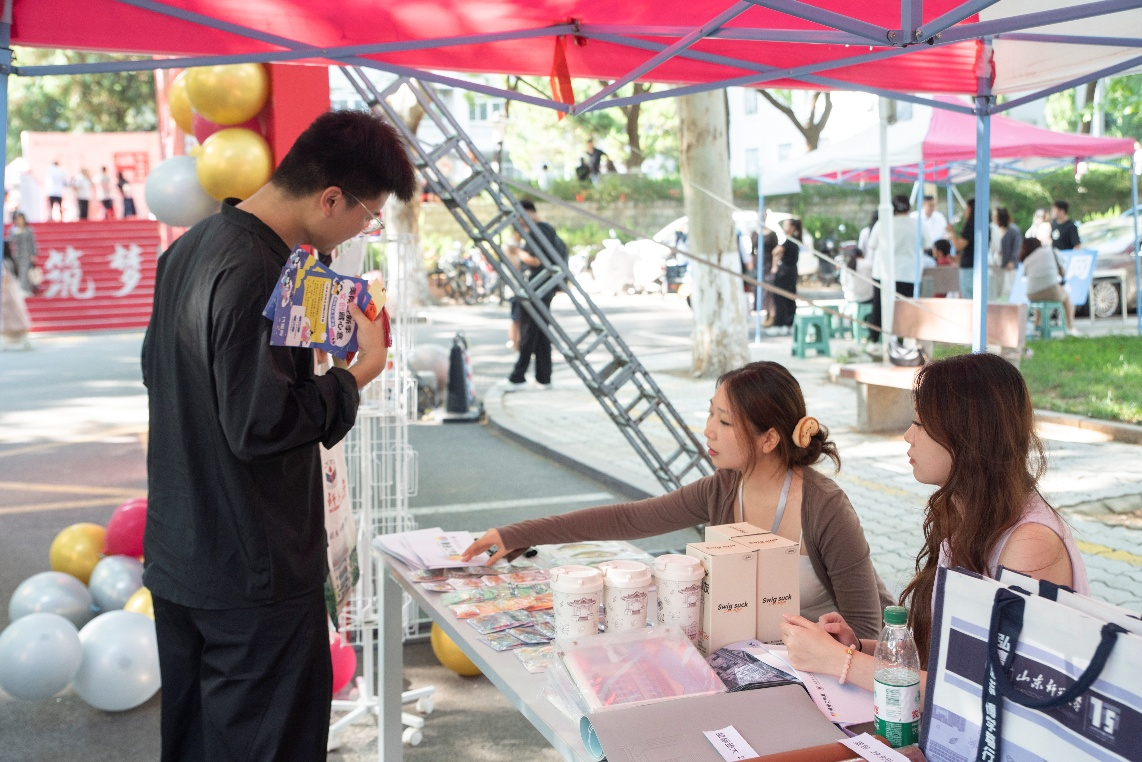 为了让新生更好地了解学院的社团文化,丰富课余生活,学院在迎新现场设置了社团展示区和融媒体中心原色工作室文创展示区。篆刻社、手绘社等各个社团纷纷拿出自己的“看家本领”,展示社团的特色和成果。新生们被这些丰富多彩的社团活动所吸引,纷纷驻足观看,现场气氛热烈非凡。