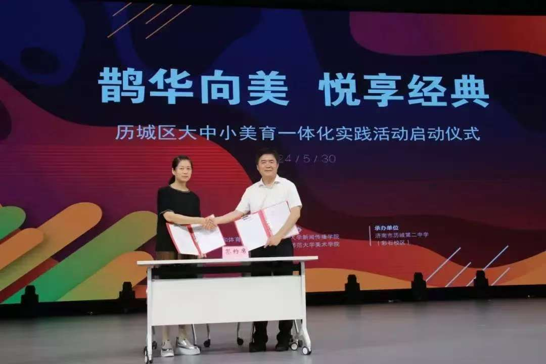 充分践行高校赋能基础美育和社会美育的服务价值,带领学院师生深度参与基础教育美育发展,通过评审、培训及学术活动等高阶引领,强化高校对基础教育的引领与服务作用。她将黄河文化编入基础教育阶段美术教材,让中华优秀文化和可信、可爱、可敬的中国形象在孩子心中生根、在课堂里绽放。同时依托山东省高中美术特级教师工作坊主持人、山东省中小学美术教指委副主任委员、山东省兼职美术教研员等身份,带领一线教师深耕地域文化,打造区域美育品牌,实现“校校有精品、师师出优课、课课有文化”;作为社会美育事业的践行者,带领研究生为山东博物馆开发系列美育课程;依托学院优势组织开办社会美育研修班,向社会大众传播中国优秀传统书画文化。近两年已成功举办16期,辐射全国各地数百名艺术爱好者,充分彰显了高校服务社会美育的担当,极大提升了学校的美誉度和影响力。