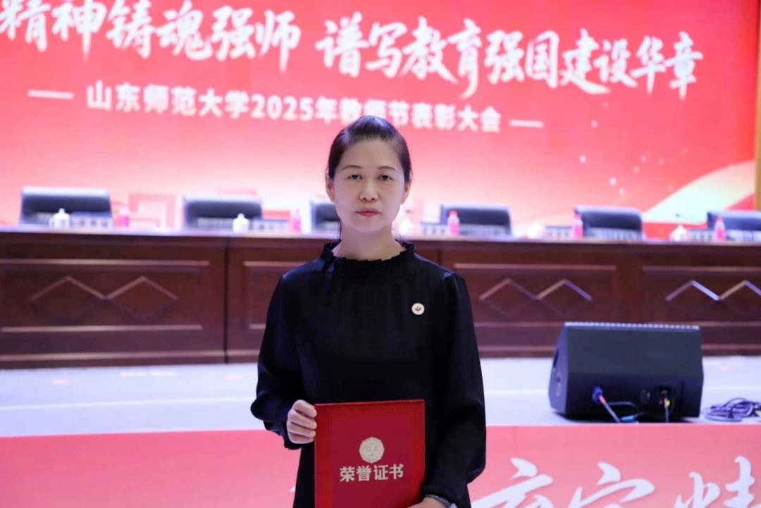9月9日上午的山东师范大学大礼堂,庄严热烈又不失温馨感人。2025年教师节表彰大会在这里隆重举行。当美术学院副院长、博士研究生导师李民教授站在领奖台上从学校领导手中接过山东师范大学“十佳教师”的荣誉证书时,现场师生为她送上了祝福的掌声。24年的坚守,职业选择最终沉淀为生命契约,从一个专业知识的传递者,到立德树人的践行者,再到美育事业的推动者,李民每一个奋斗足迹都化为点点光芒,闪耀在美育事业的灿烂星河。