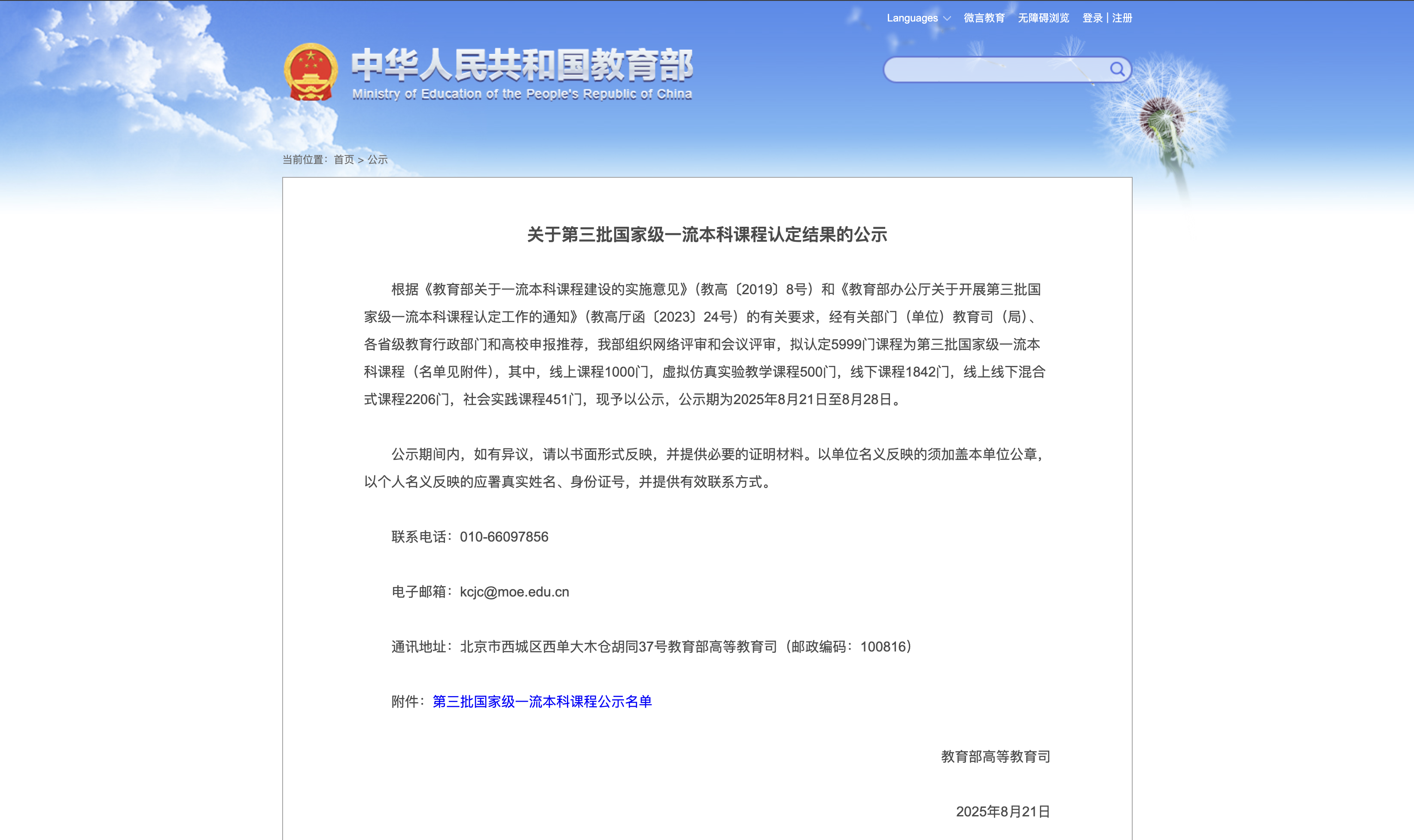 8月21日,教育部公布了《关于第三批国家级一流本科课程认定结果的公示》。我院两门课程喜获第三批国家级一流本科课程。分别为孙夕恺副院长带领团队申报的“古画修复虚拟仿真实验”教学课程,团队其他成员有曹娜、李荣智、姚理、贾凤鑫;以及刘翔鹏教授带领团队申报的“写意花鸟”线上线下混合式课程,团队其他成员有赵少俨、涂少辉、姚鹏魁。