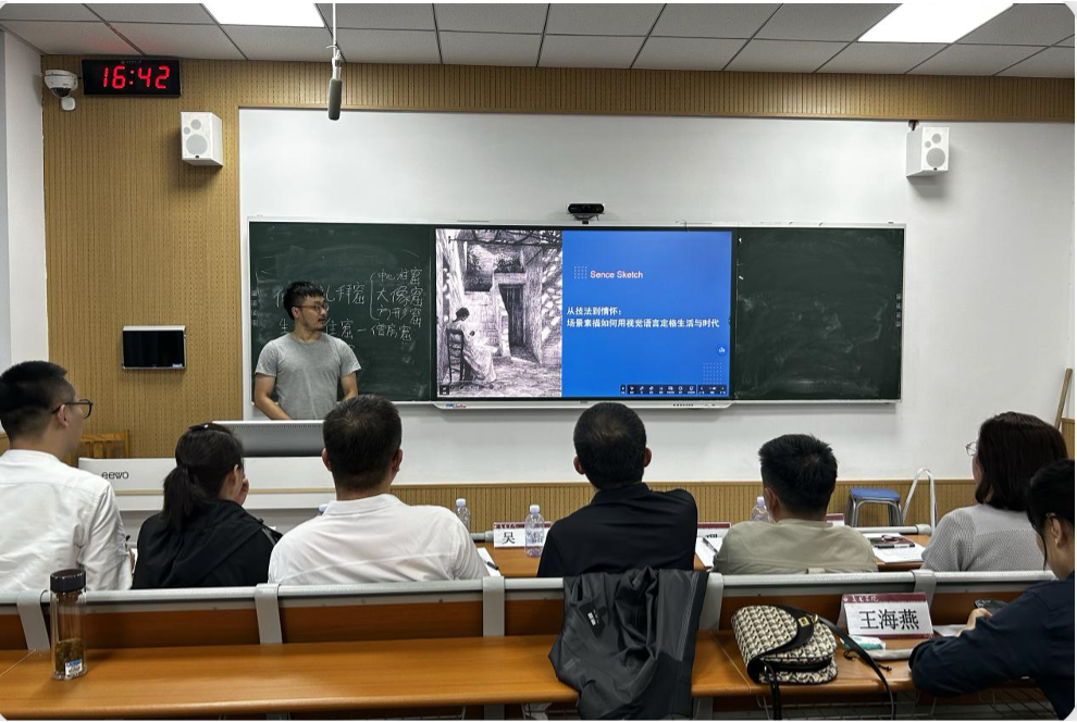 侯镝老师的课程《从技法到情怀:场景素描如何用视觉语言定格生活与时代》充满了现代教学理念。他创新性地采用情景教学法,以为学校图书馆设计交流空间为虚拟课题,指导学生如何从主题立意与绘画技法两个层面入手,用场景素描的艺术形式记录生活、反映时代,实现了从单纯技法传授到人文情怀培养的升华。