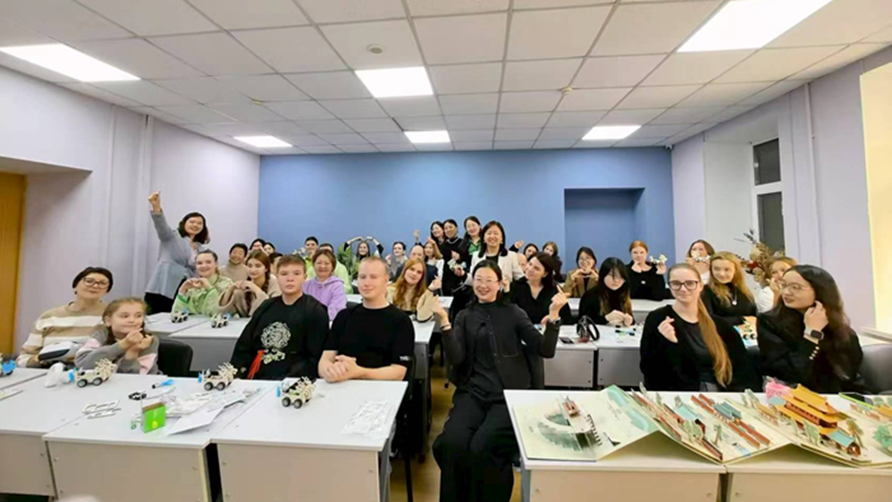 在圣彼得堡孔子课堂,巡讲团以《数字里的文化奇遇—AI教育创新中的中俄互动体验》为题,聚焦圣彼得堡孔子课堂及周边学校的青少年群体,打造“做中学、玩中学”的沉浸式体验课堂。