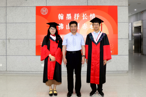 6月16日,山东师范大学在千佛山校区举行2023届研究生毕业典礼暨学位授予仪式。校党委副书记、校长曾庆良为美术学院博士研究生刘梅、翟明帅授予学位...